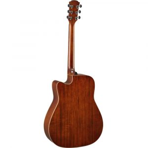 Rich overtones and improved sustain thanks to the rosewood back and sides deliver improved sound through greater ‘depth’. The appearance, with abalone inlay around the sound hole, is more luxurious and an obvious step-up.