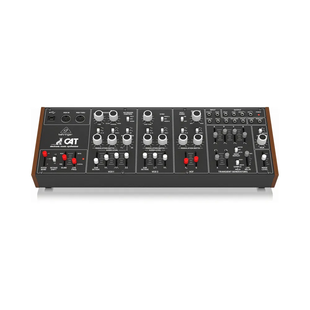 In 1975, a new synth strolled into town. The Cat as it was called was an analog, duophonic, three octave synthesizer that was very similar to the ARP Odyssey. Its keyboard would produce two control voltages that were routed into its two VCOs. An ultra-affordable and even more feature-packed homage to that iconic synthesizer comes in the form of the Behringer CAT. Conjure up the virtually any sound imaginable with incredible finesse and ease. The pure analog signal path is based on authentic VCO, VCF and VCA designs in conjunction with 4 variable and simultaneous oscillator shapes and Duophonic/Paraphonic capabilities. Owning a CAT is like having your own personal time machine, enabling you to freely embrace the past – or shape the future. And the best of all, it doesn’t scratch.