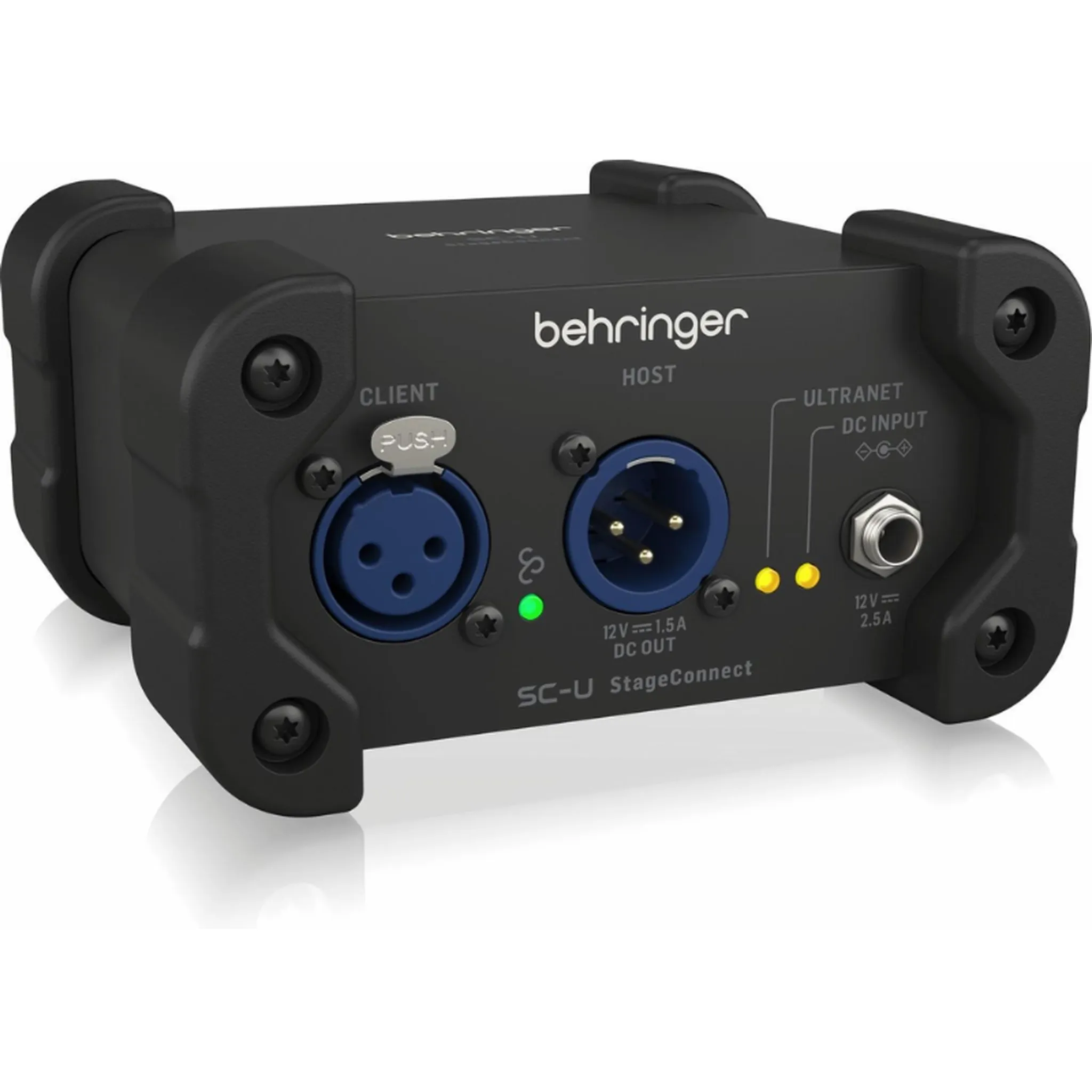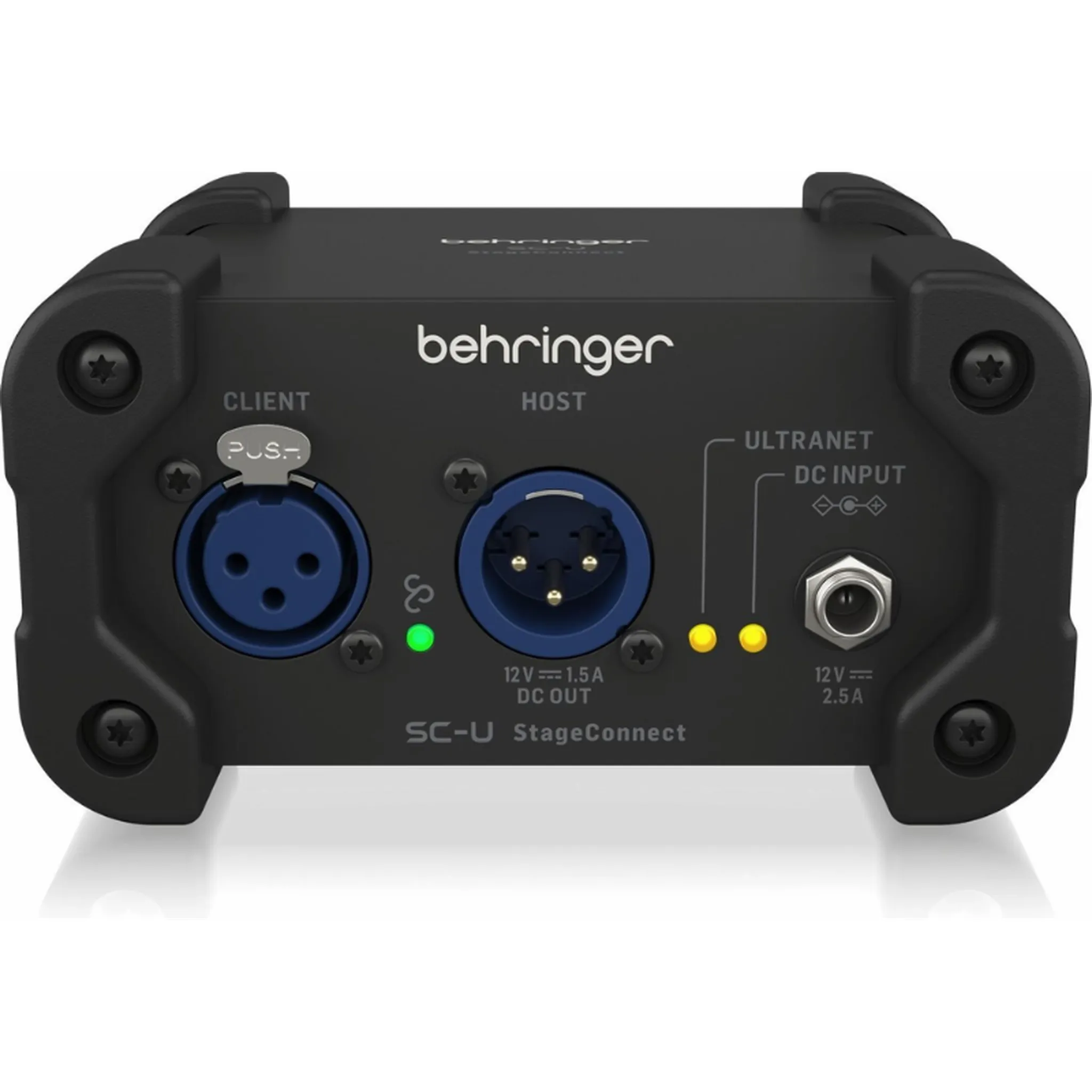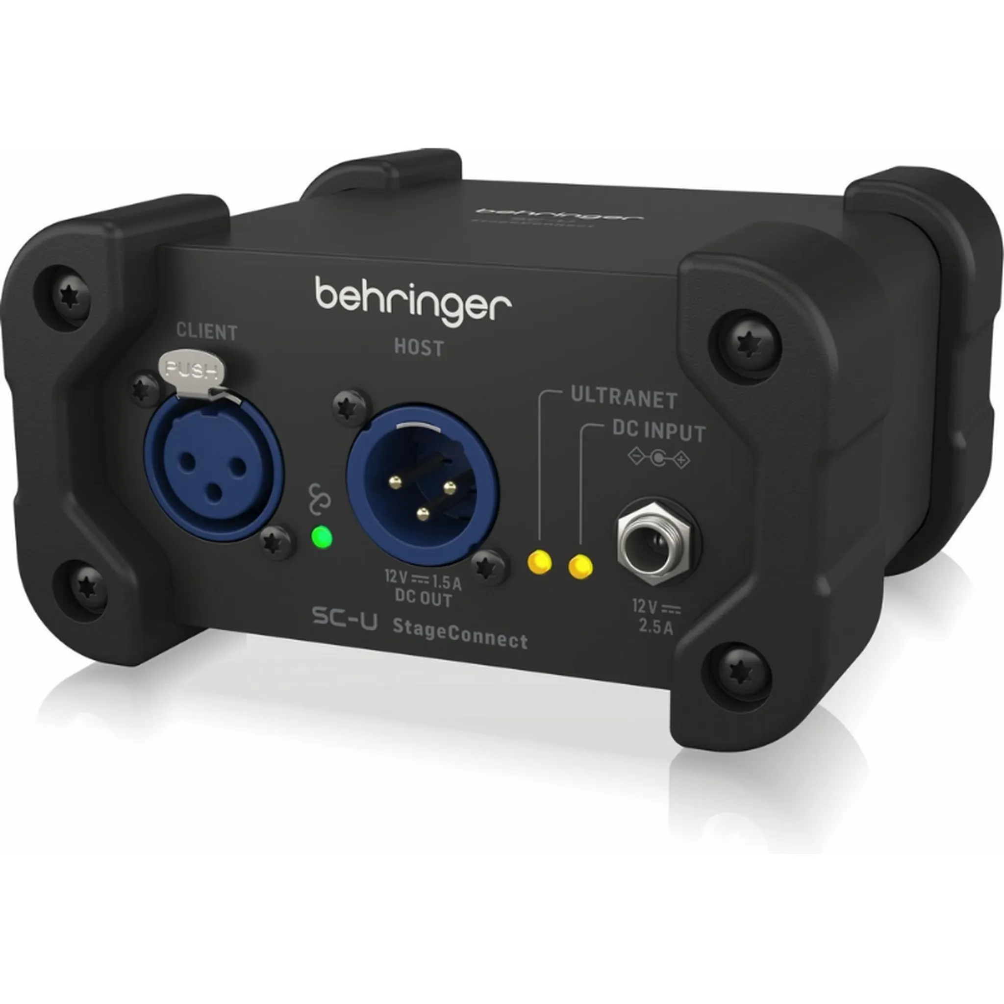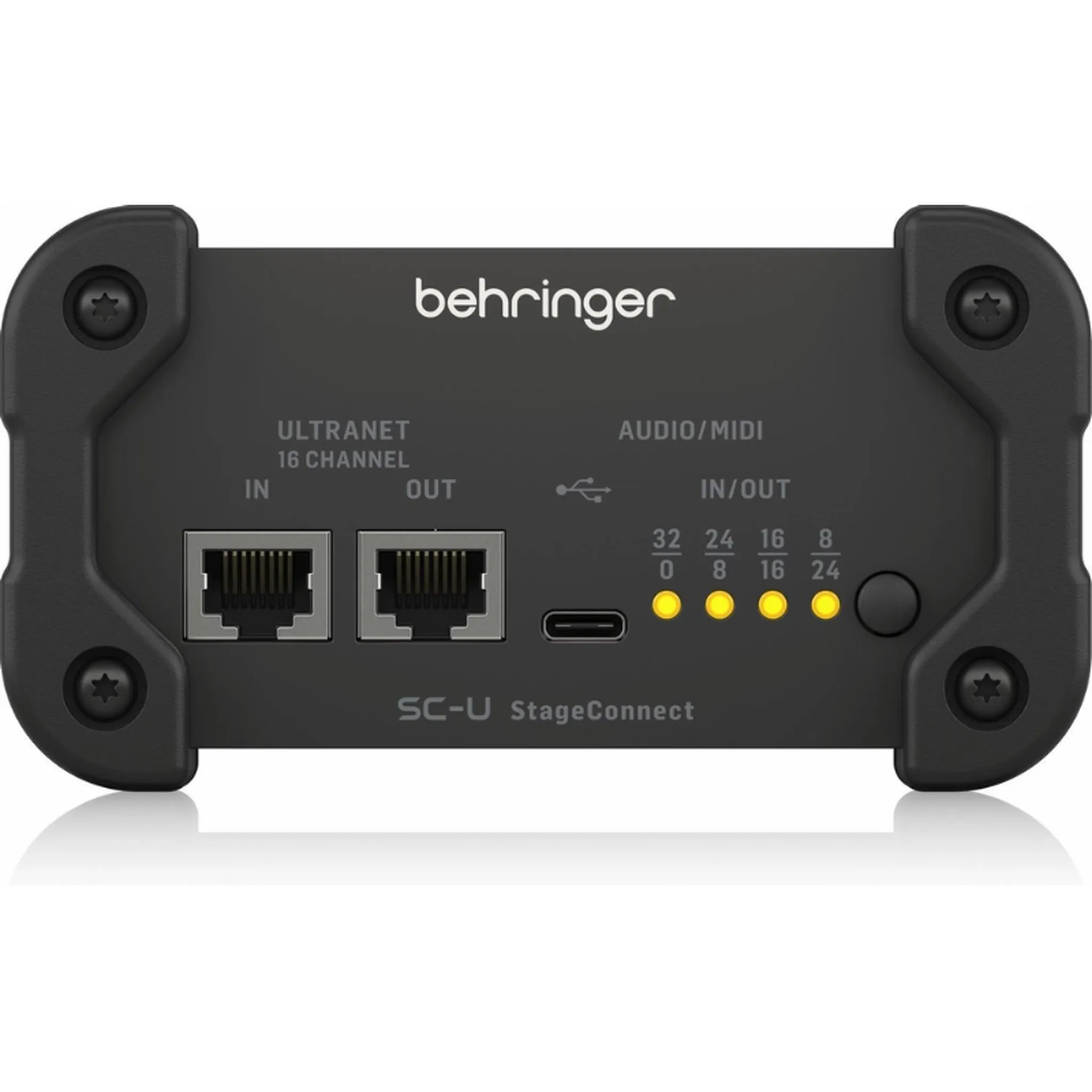 The Behringer SC-U is a compact StageConnect interface that bridges your StageConnect ecosystem with multi-channel USB audio and Behringer Ultranet monitoring. Acting as a three-way hub, it routes up to 32 channels of audio between your mixer, computer, and personal monitoring system with ultra-low latency and rock-solid sample rate conversion.