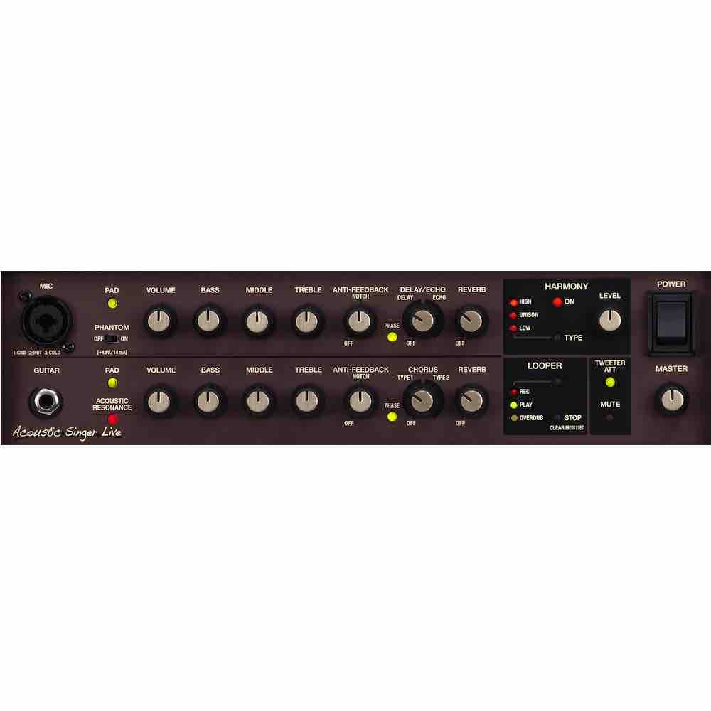 The Acoustic Singer Live takes the acoustic stage amp to new levels of sound quality and creative versatility. Incorporating BOSS’s latest advancements in amplifier research, this compact powerhouse produces rich, vibrant sound with unmatched punch and clarity. Independent channels are provided for acoustic guitar and vocal, and each is equipped with discrete analog input circuits and three-band EQ for studio-quality sound. And with additional features such as Acoustic Resonance, looping, automatic vocal harmonies, effects, and much more, the Acoustic Singer Live gives acoustic musicians everything they need to deliver inspiring and impactful live performances.