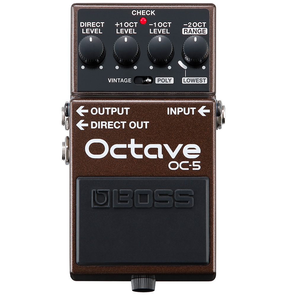 Fusing classic BOSS octave tones with the latest tracking technologies, the BOSS OC-5 sets a new standard in octave pedal performance. Vintage mode provides a spot-on recreation of the legendary mono OC-2 from 1982, while Poly mode offers numerous enhancements for extended-range playing. And with the addition of an octave-up feature, a span of three octaves is now available for creative exploration. From fat, low mono sounds to octave-shifted chords and more, the OC-5 delivers the widest range, finest sound quality, and best playability in any octave stomp to date.