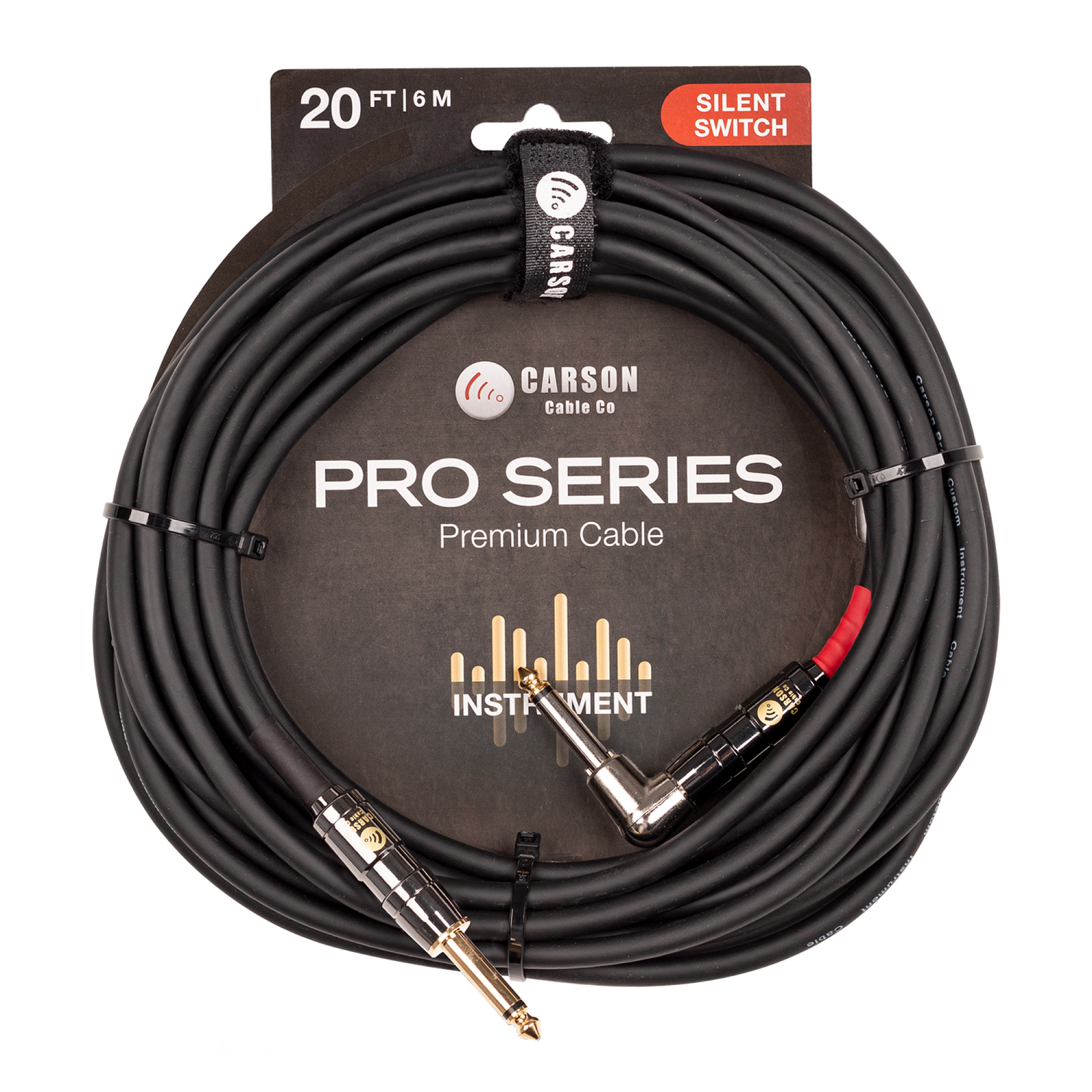 Carson CSW20SL Silent Switch Pro 20FT Right Angle Guitar/Instrument Cable
