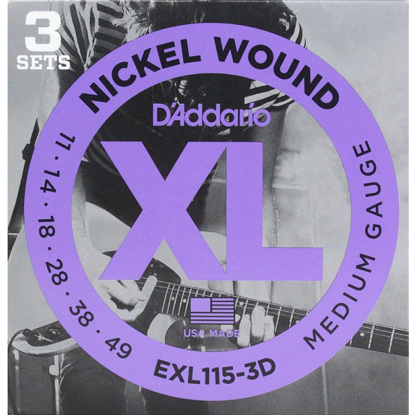 Daddario EXL115-3D 11-49 Electric Guitar Strings 3 Pack