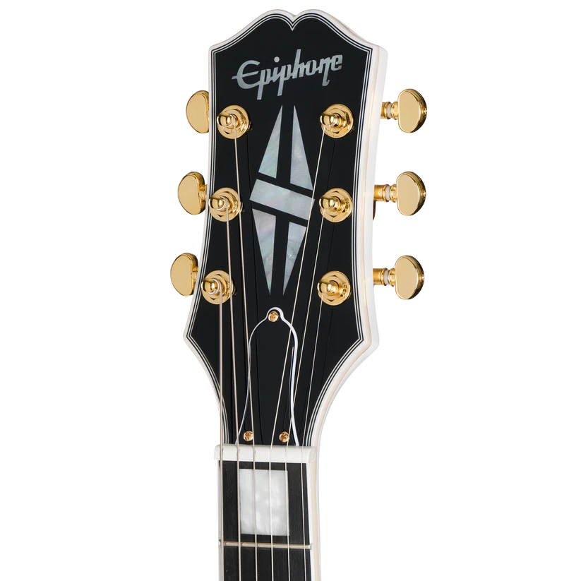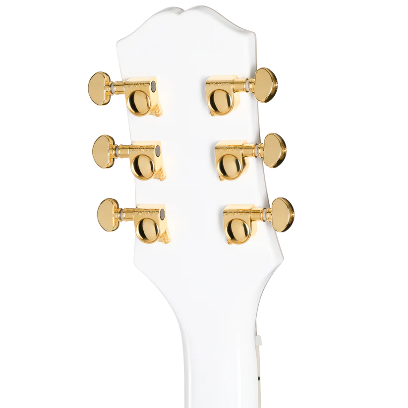 Contoured double-cutaway mahogany body, mahogany neck with 1960 SlimTaper C profile, bound ebony fretboard with 22 medium jumbo frets and pearloid block inlays, gold hardware, Grover Mini Rotomatic tuners, ProBucker Custom pickups, and Epiphone premium gig bag