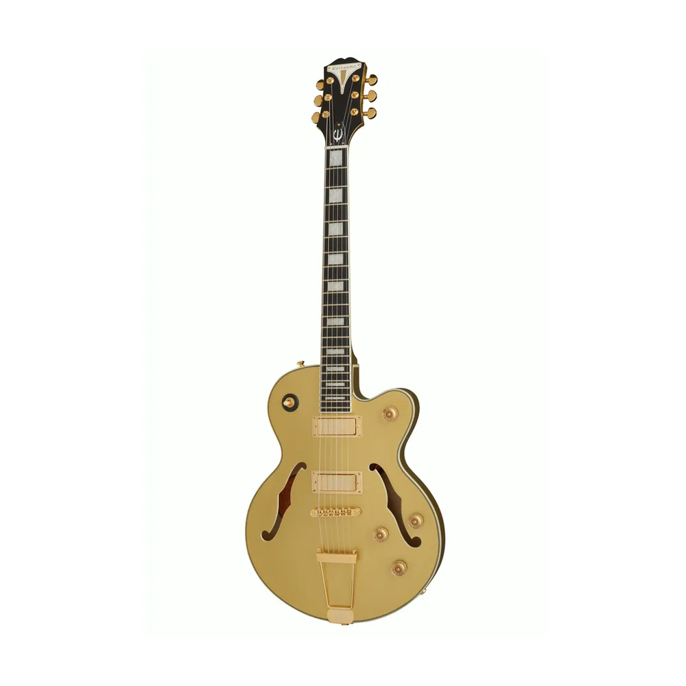 An original Epiphone shape, with a modern twist – the new Uptown Kat produces a great sound with a metallic modern finish. The new UpTown Kat™ ES Collection is the next generation of Epiphone’s classic“Kat” archtop and features a true ES style semi-hollowbody archtop with newly designed Epiphone ProBucker™ FB720 mini humbuckers™, Graph Tech® nut, Ebonyngerboard, and Grover® Rotomatic tuners. Available in four great colours – Sapphire Blue Metallic, Ruby Red Metallic, Emerald Green Metallic, and Topaz Gold Metallic.