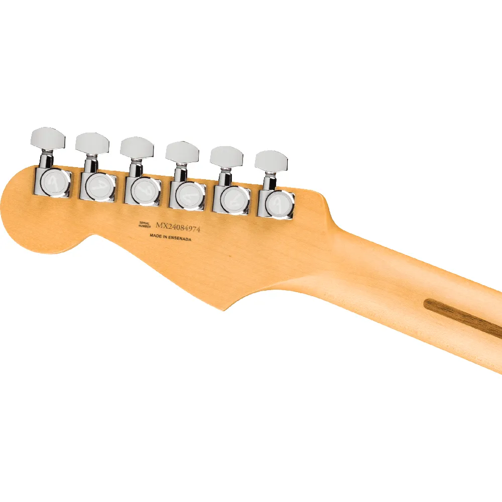 The Player II Modified Stratocaster is a classic guitar with the modern player in mind. Everything about the neck is designed for fast and fluid playability, from the Modern “C”-profile with silky satin urethane finish on the back to the comfy 9.5”-radius slab rosewood or 1-piece maple fingerboard with smooth rolled edges and 22 medium jumbo frets. The alder body provides classic Fender punch and is available in a variety of exciting new finishes. The Player II noiseless pickups deliver classic Strat chime and sparkle while eliminating unwanted noise and the push/pull switch on the 2nd tone control provides even more tonal flexibility by adding the neck pickup into switch positions 1 and 2. The 2-point tremolo, short post locking tuners, TUSQ nut and modern string tree all combine to keep tuning incredibly stable, while the wider travel of the chamfered tremolo block allows players to coax even more expressive, musical vibrato from their instrument.