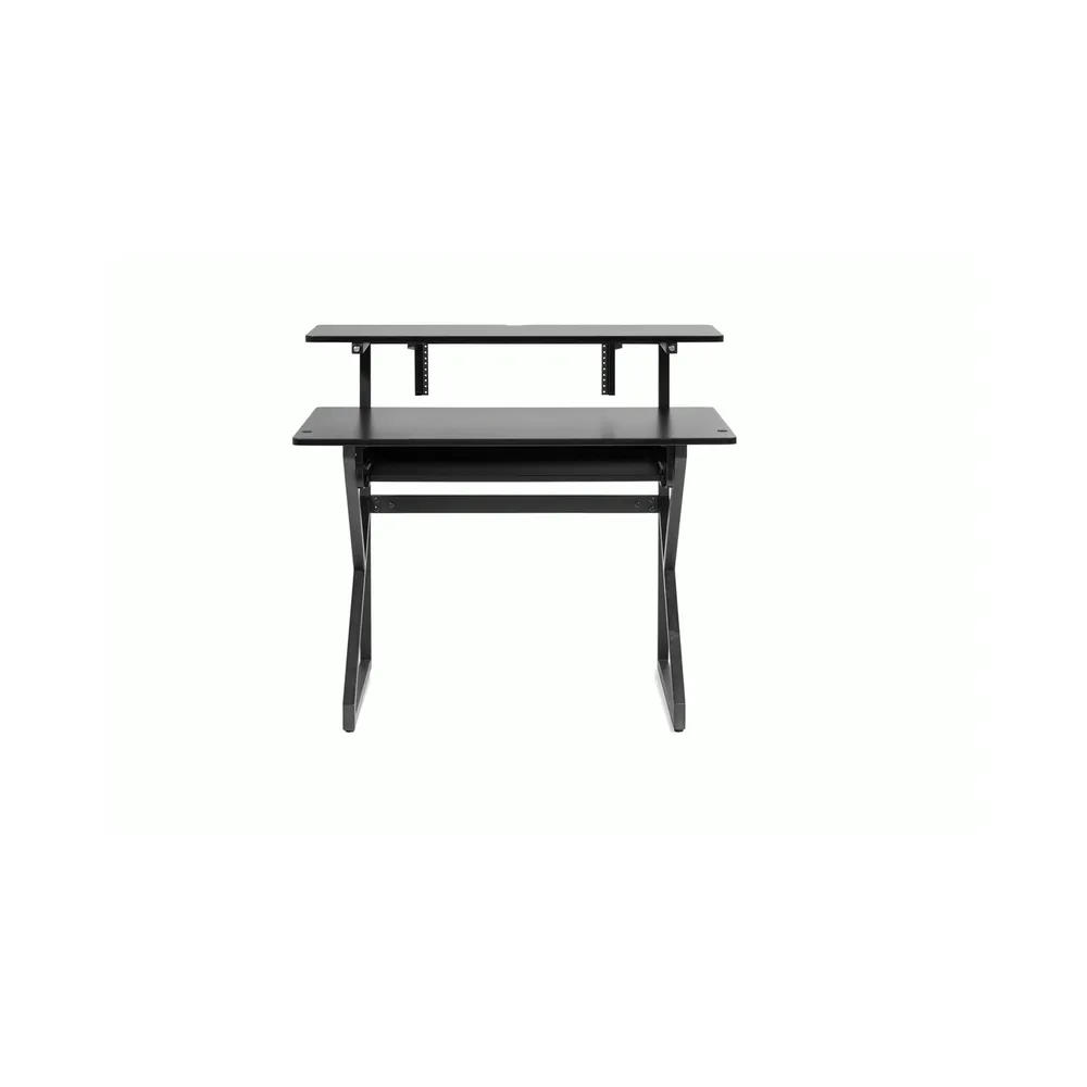 The Content Creator series features all the design elements to get your creative juices flowing. Including rack space below the raised monitor shelf, threaded mic adaptor posts for mic mounting, and individual feet leveling to adjust to uneven surfaces.