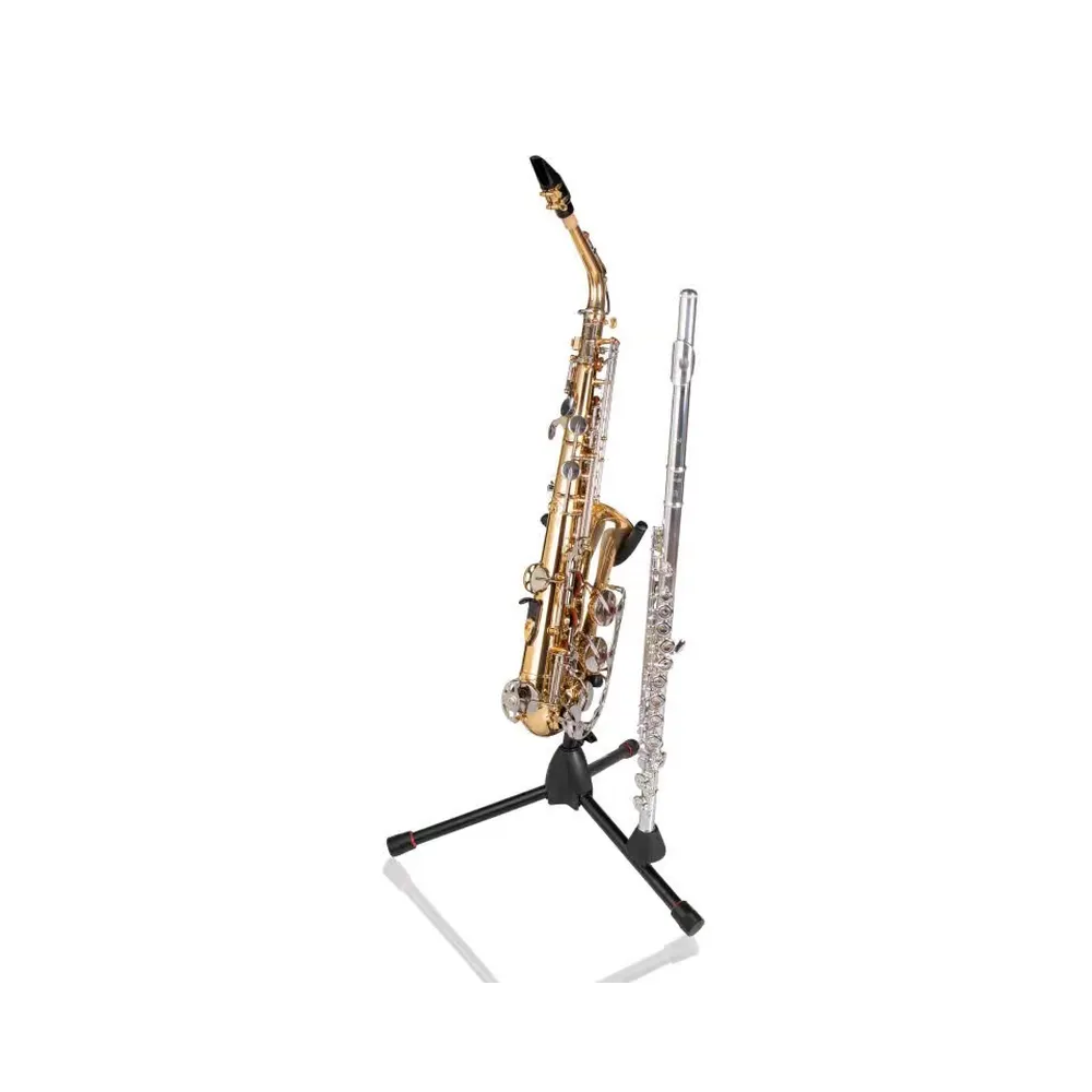 When you need to quickly switch between instruments or just need to take a break, the alto/tenor tripod stand with Clarinet/Flute peg attachment by Gator Frameworks will keep your instruments safe and at the ready! Perfect for jazz musicians, this stand is compact and attractive, making it essential for all your gigs! The Dual, rubberized yokes prevent surface scratching, while a non-slip base keeps the instrument planted safely and out of harm’s way on any flat surface – stage, classroom, showroom floor – whatever the occasion!
