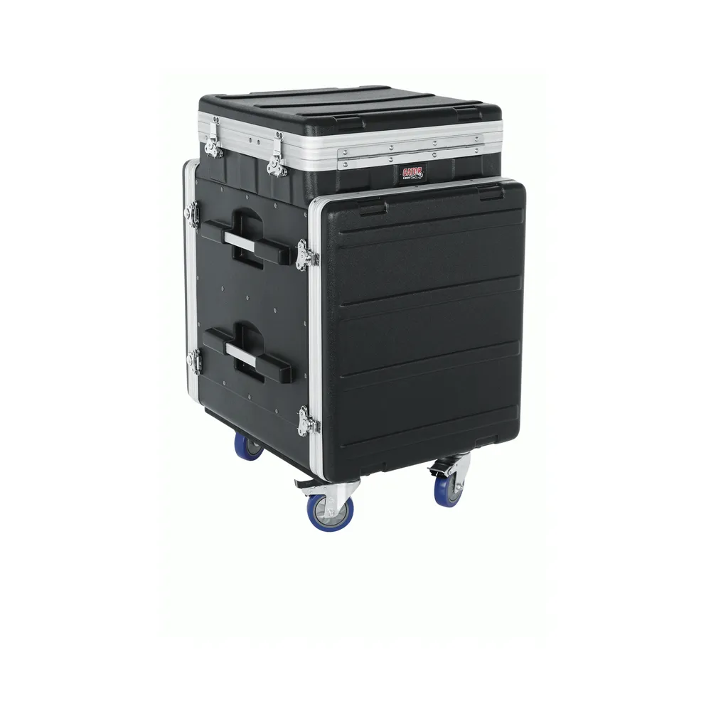 Gator Cases provides you with the products that protect what’s important to you. This is the Gator GRC-10X12 PU. A part of their Pop-Up Console Racks Range. It is a ATA Molded PE Pop-Up Console Rack; 10U Top; 12U Bottom; w/ Casters. Mobile Audio 19″” Console Rack with Pop-Up Top-Loaded Rack with High-Density Polyethylene Construction. Features include – Top Rack Uses a Pop-Up Ratchet System for Transporting Flat then Elevating to Various Angles, Threaded rack rail, Side handles for easy lifting to stage or truck, and 4″” heavy-duty industrial caster, 2 of which are locking.