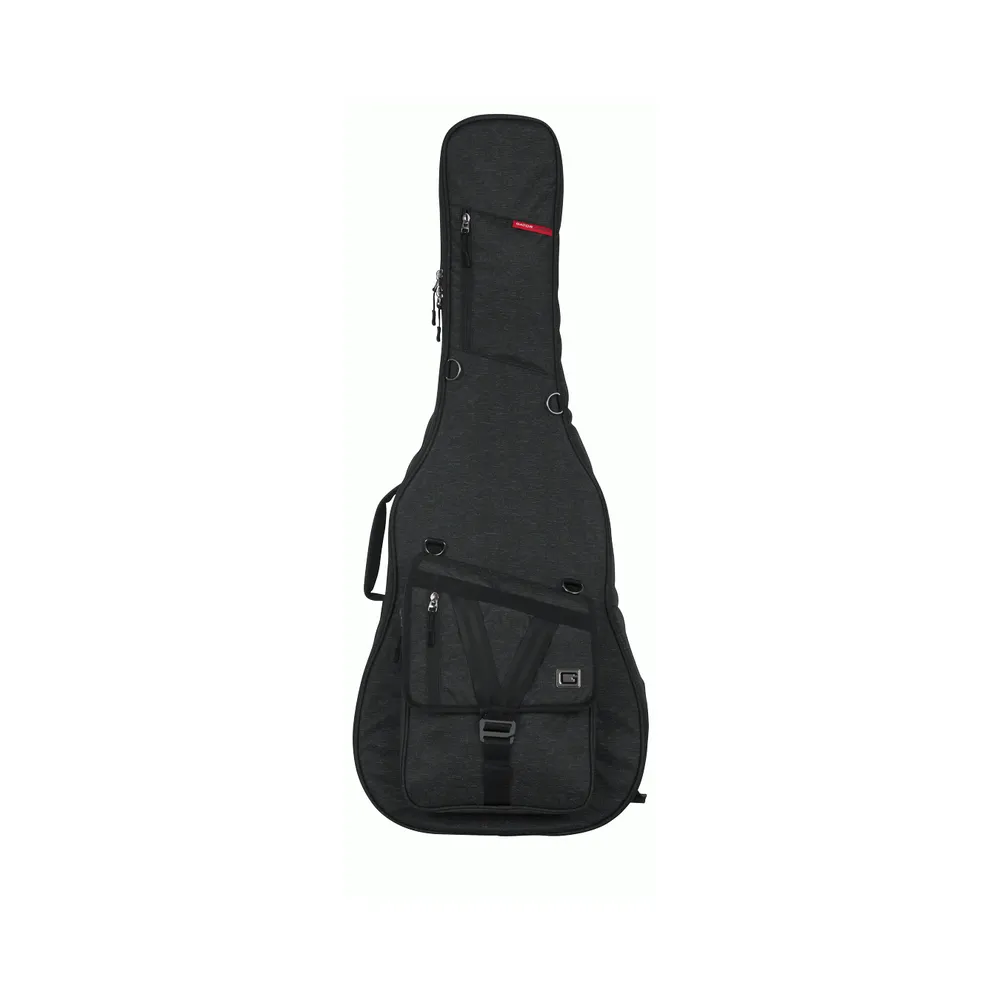 Gator’s Transit Series acoustic guitar gig bag is a great solution for transporting your favorite instrument to and from the gig. Transit gig bags are made from durable and weather-resistant materials that hold your instrument snugly. The interior protects your guitar’s finish with 20mm-thick padding and a removable 3-point interior padding system. And there is plenty of storage space for your accessories thanks to the large exterior pockets.
