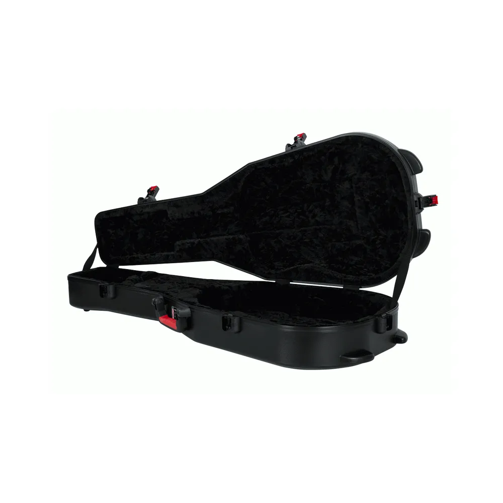 Gator Cases provides you with the products that protect what’s important to you. This is the Gator GTSA-GTRDREAD. A part of their TSA ATA Guitar Cases Range. It is a TSA Series ATA Molded Polyethylene Guitar Case for Dreadnaught Acoustic Guitars. Designed to fit Dreadnaught Acoustic Guitars with ATA Molded Military Grade Polyethylene Outer-Shell. Features include – TSA Approved Locking Center Latch Ideal for Air Travel, Universal Fit EPS Protective Foam Interior Nest, Thick Black Plush Interior, and Extended Reach Protective Neck Cradle.