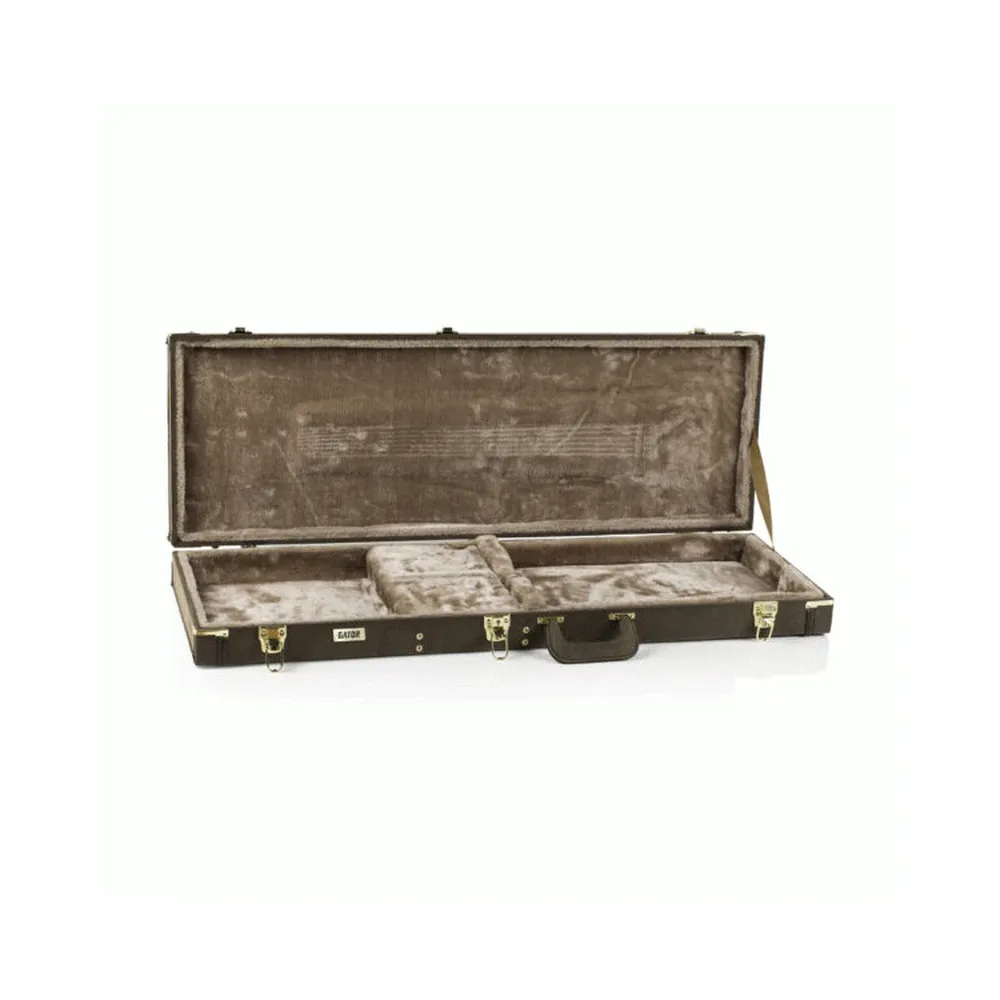 Gator Cases provides you with the products that protect what’s important to you. This is the Gator GW-ELECT-VIN. A part of their Deluxe Wood Cases Range. It is a Deluxe Wood Case for Electric Guitars; Vintage Brown Exterior. Rugged Plywood Construction with Plush Lined Foam Padded Interior with Storage Compartment. Features include – Lockable with Ergonomically Designed Padded Carrying Handle, Gold-Plated Hardware, Distressed leather-like finish, and .