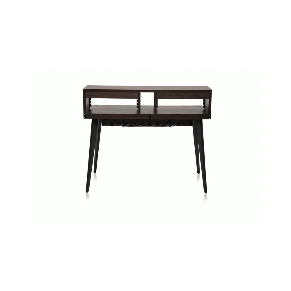 The Elite series has a luxurious feel with beautiful wood grains, innovative design elements such as cable management, pull out trays, rack space, and a raised shelf that keeps your monitors at optimal listening level.