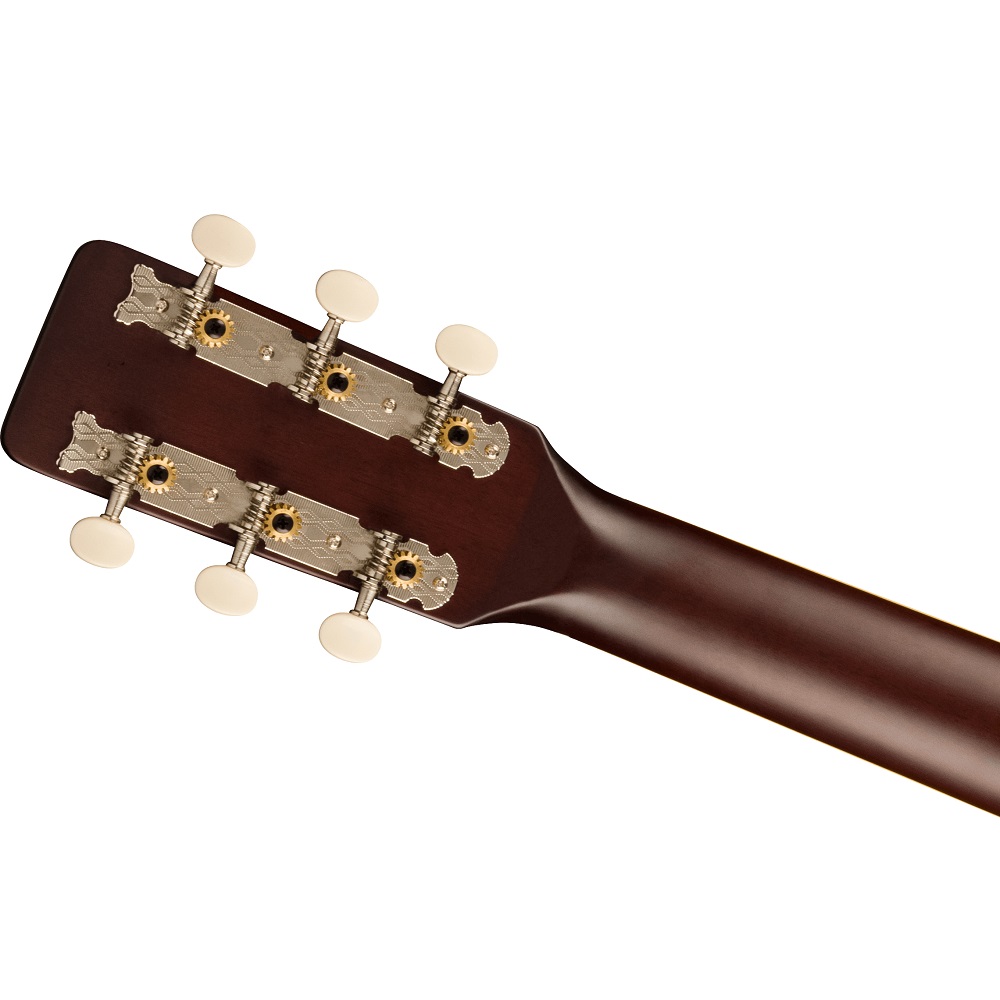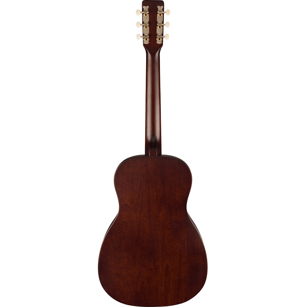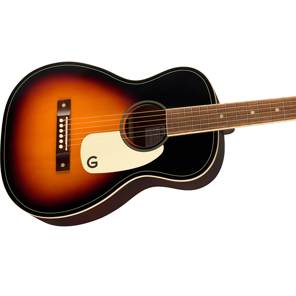 The X-braced body is crafted with select lightweight laminate tonewoods for an optimal balance of woody vintage tone and reliable durability, while the “C”-shape neck presents an inviting feel for hours of old-timey inspiration. Period-correct details such as a vintage-style pinned bridge, “G”-graphic pickguard, painted pinstripe purfling, 3-on-a-plate open-gear tuning machines and oversized dot fingerboard inlays combine for a nostalgic personality destined for any barnburner or jamboree.