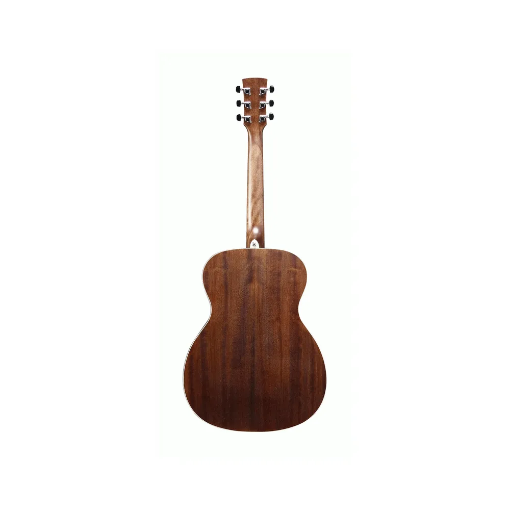 The Okoume back and sides generate a woody, warm tone when the guitar is played softly or finger-picked and provide punchy high-mids with a clear projection when strummed.