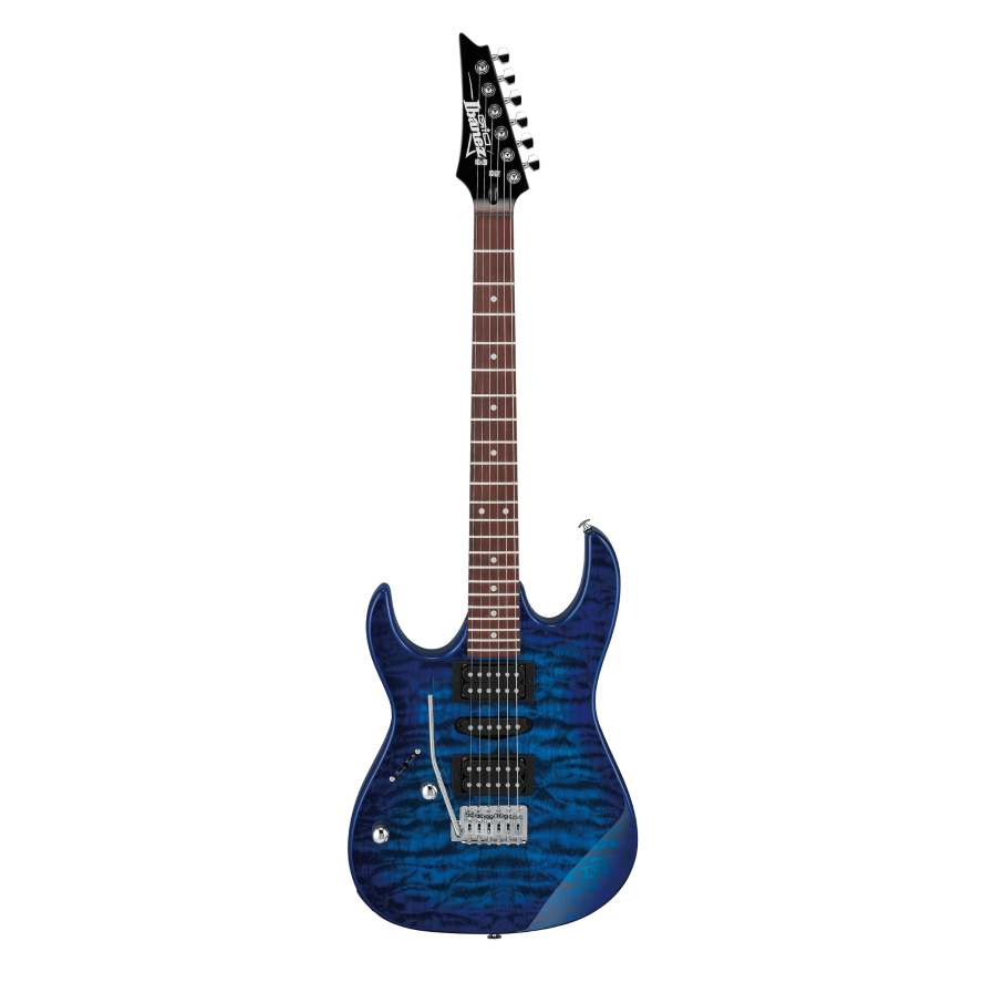 The GRX70QAL is an affordable guitar â but you wouldnât know it from looking. Its eye-popping quilted maple top gives it an expensive look that belies its price tag. But the GRX70QAL isnât about looks â it delivers killer sound to match. Its poplar body supplies a resonant, balanced-sounding base for your tone. Beyond that, a versatile trio of Infinity pickups delivers a range of fierce, high-output tones. As for playability, youâll love the smooth, fast action of this guitarâs neck. Engage in serious dive-bombing and other whammy acrobatics with the GRX70QAL’s standard tremolo. Many guitarists here at Sweetwater have cut their teeth on the Ibanez GRX70 and have found it to be a great beginner electric.