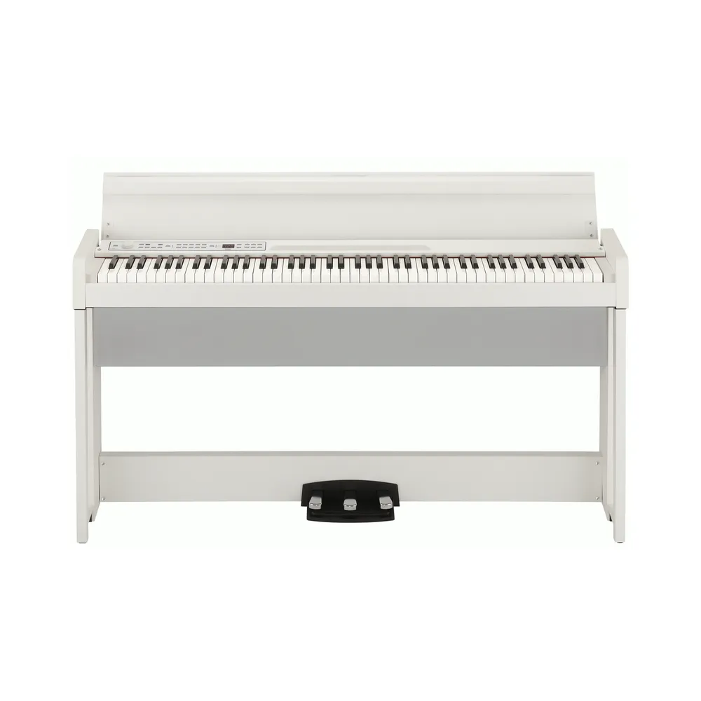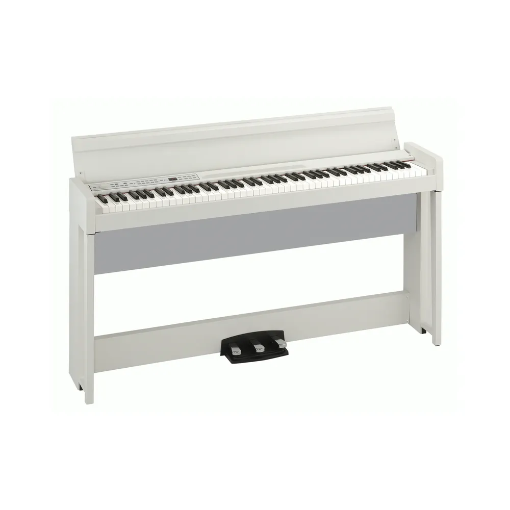 Superb sound and outstanding design that will enhance any room.. KORG sets a new standard for the Digital Piano.The C1 is a truly exceptional digital piano. With KORG’s unique history of musical instrument design and audio technology, the C1 offers levels of playability and versatility that will exceed the expectations of the most demanding pianist. From the very first note, the depth and clarity of sound that the C1 delivers from its compact, slim-line cabinet will astound both player and audience alike. The precisely-engineered keyboard provides a feel and response that has been designed to help the student develop a sound playing technique while responding fully to the demands of the more advanced player.First and foremost, the KORG C1 is a superb piano, both as an exciting alternative to an acoustic instrument or in locations where a traditional instrument could not be used. It never needs tuning and can be used with headphones to avoid disturbing others.Furthermore, a variety of additional features will inspire new levels of creativity in players of all abilities and enhance their enjoyment of music, including 30 superbly realistic instrument sounds, Bluetooth audio streaming and on-board recording. Designed and manufactured in Japan, the KORG C1 redefines the digital piano.