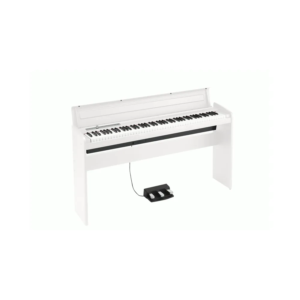 Emanating a sense of quality that exceeds its class, this slim, digital piano features a beautiful and rich piano sound, keyboard cover, a one-piece stand, and a three-pedal unit.There are several crucial points in choosing a digital piano, such as the design, for instance. The slim, stylish body of the LP-180 comes in your choice of black or white, ensuring that it will fit unobtrusively into your room layout and decor. Another crucial point which has not been overlooked is the sound. KORG is internationally famous as a manufacturer of studio quality synthesizers and keyboards, and its acclaimed grand piano sounds are built into the LP-180. It goes without saying that all of the basics, including the keyboard, pedals, playing feel, and sound, are just as solid as you would expect from KORG with its more than fifty years of experience as a manufacturer of electronic instruments. If you choose the LP-180, you’ll have the satisfaction of knowing you made the right choice.