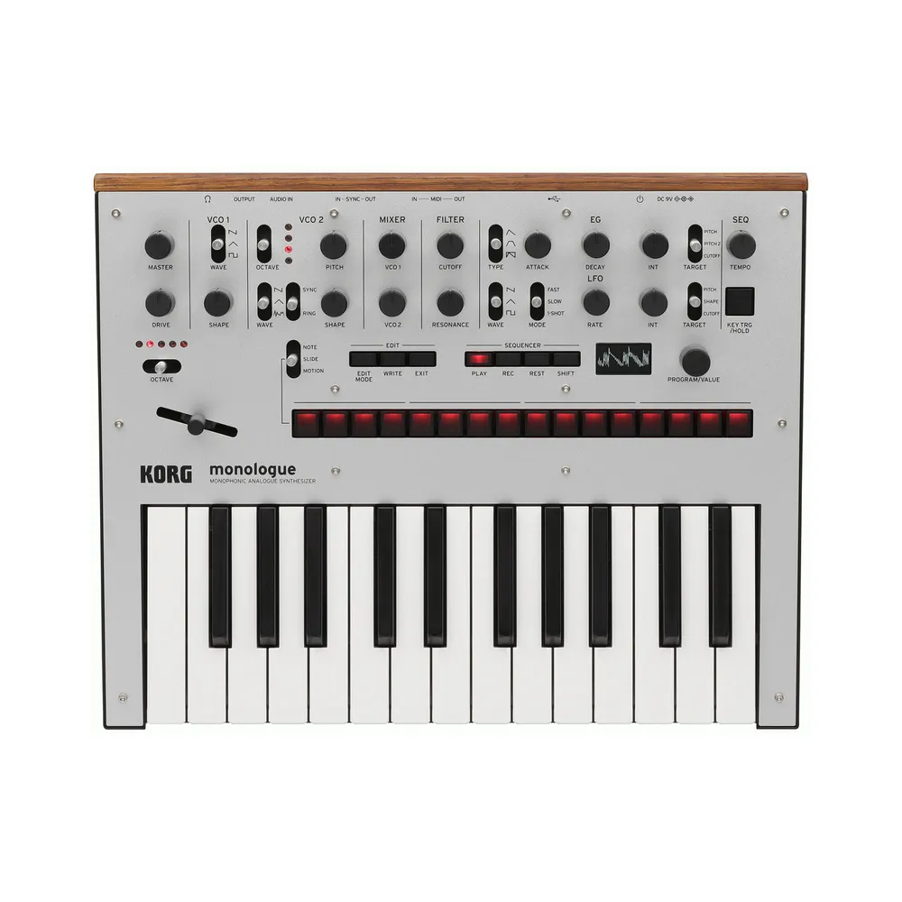 Beautiful and Powerful. Your own monologue!Next-generation monophonic analog synthesizer in a vivid five-color lineup.Fully programmable, analog synthesis for all players; monologue is the next-generation monophonic synthesizer that shares the spirit of the acclaimed minilogue, with a completely new voice and powerful new features.The monologue is a 25-key, fully programmable monophonic analog synthesizer with a voice all its own. While sharing its sleek layout, knob-per-function workflow and high-quality construction with the best-selling minilogue, monologue is a truly unique new synth for all types of musicians; featuring new voicing and sound sculpting abilities – at an amazing price. The monologue’s completely new filter, modulation, drive, and LFO can generate powerful basses and sharp leads, creating awesome mono sounds that showcase its single-voice design. The step sequencer has also been dramatically expanded, allowing more intuitive and more complex editing. With a lineup that gives you a choice of five eye-catching colors, this compact instrument has a strong personality to match your own.