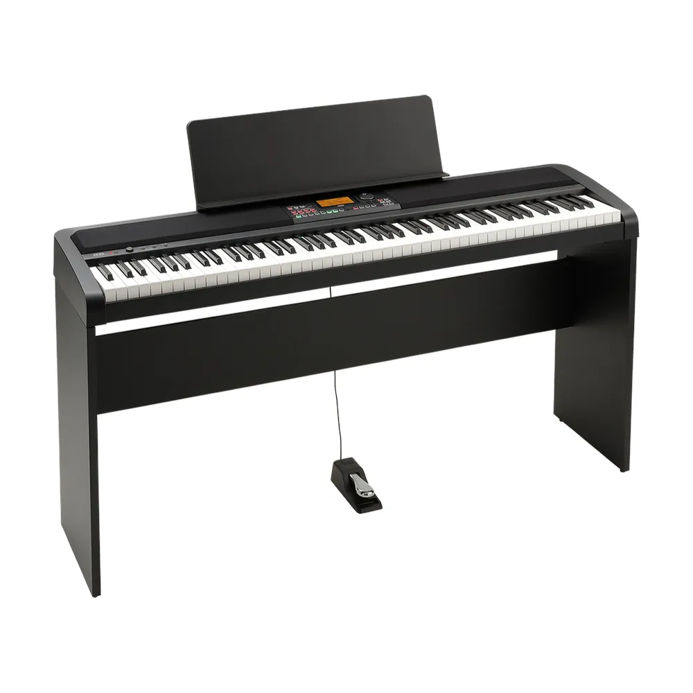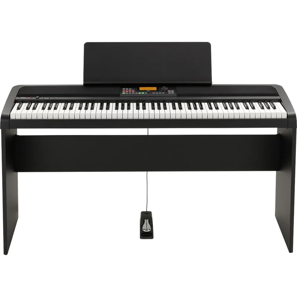 The KORG XE20 is an 88-note digital piano with two concert grand pianos and full automatic accompaniment. Play with rich German/Italian piano sounds, over 700 tones, 280+ Styles, and intuitive real-time controls for a full band experience at home.