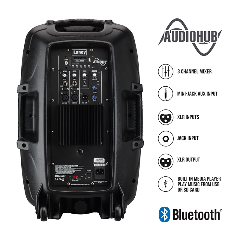 The AH112-G2 is a powerful and flexible 2-way active speaker system with an integrated mixer and Digital Media Player, capable of taking an SD card or a USB memory stick and is fitted with Bluetooth to allow audio streaming from any Bluetooth equipped audio device: Stream your music straight from your phone! The high-impact resistant polymer construction and logical control layout means that it is easy to use and portable. The AH112-G2 combines flexibility with performance making it ideal for a wide variety of sound reinforcement applications such as conferences, classrooms, parties, musical performance, worship, presentations, seminars, sports, aerobics, DJ’s, bars and more. Whatever you need the AH112-G2 has got it covered. It is recommended for crowds of up to 200.