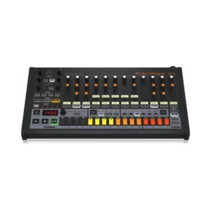 - 2 banks of 8 velocity-sensitive trigger pads with Note Repeat for beat production