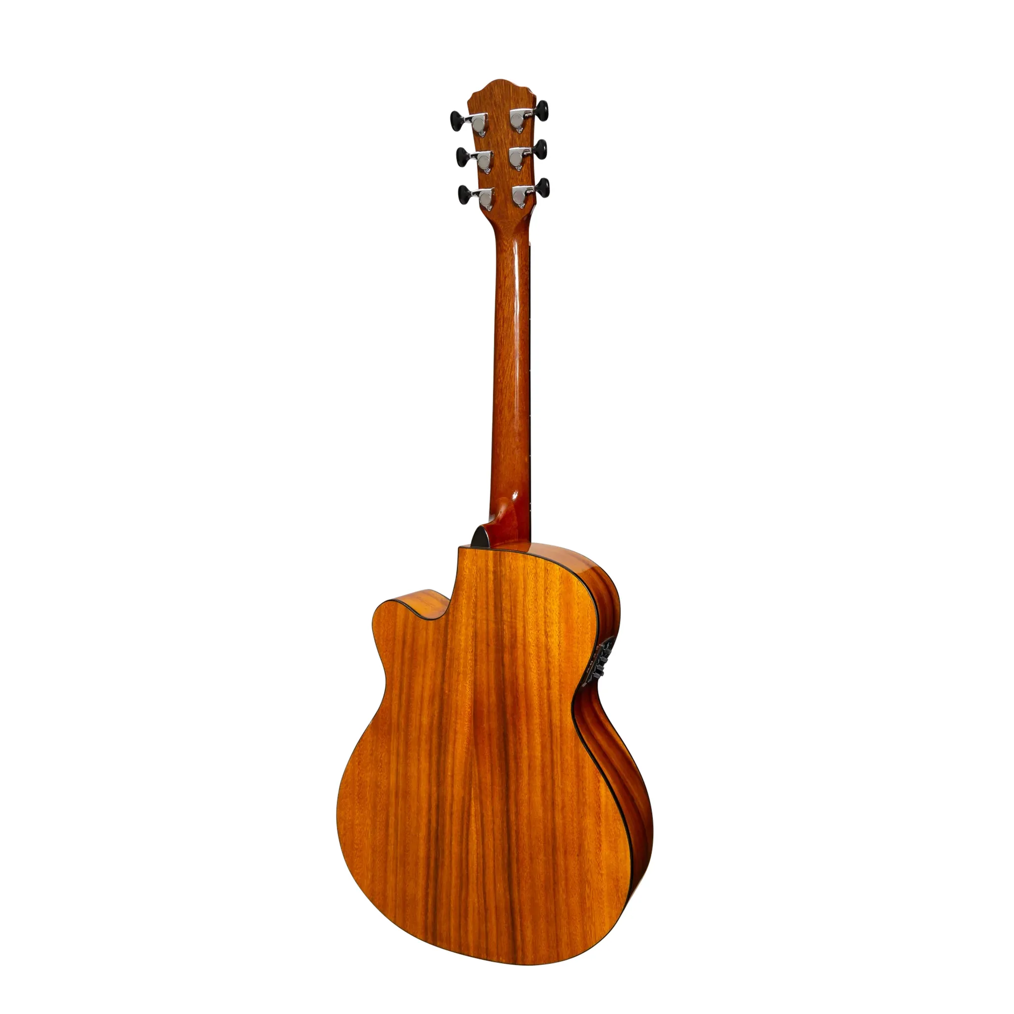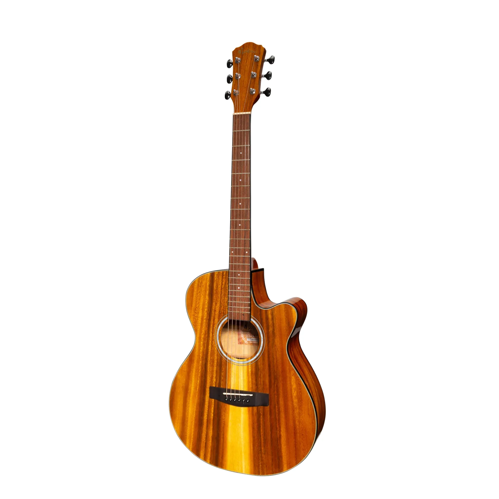 A compact folk size cutaway acoustic-electric featuring koa top, back and sides, mahogany neck, rosewood fingerboard, and Martinez E-4T pickup with built-in tuner for versatile stage performance.