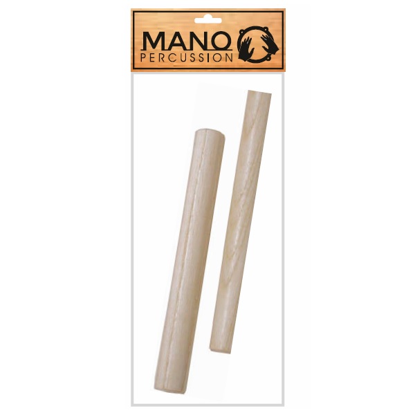 MANO PERCUSSION – Hardwood round claves. 8″ long. 7/8” diameter. Natural finish. Pair. Coloured header card packaging.