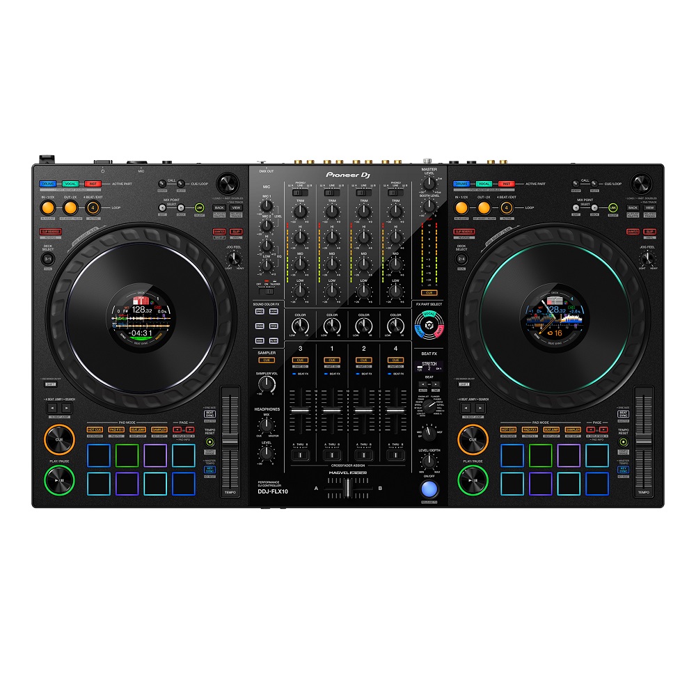 The DDJ-FLX10 is a 4-channel performance DJ controller for rekordbox and Serato DJ Pro. It includes a host of brand-new features including Track Separation technology, which enables new creative possibilities such as the easy performance of mash-ups on the fly with no need to prepare tracks in advance.