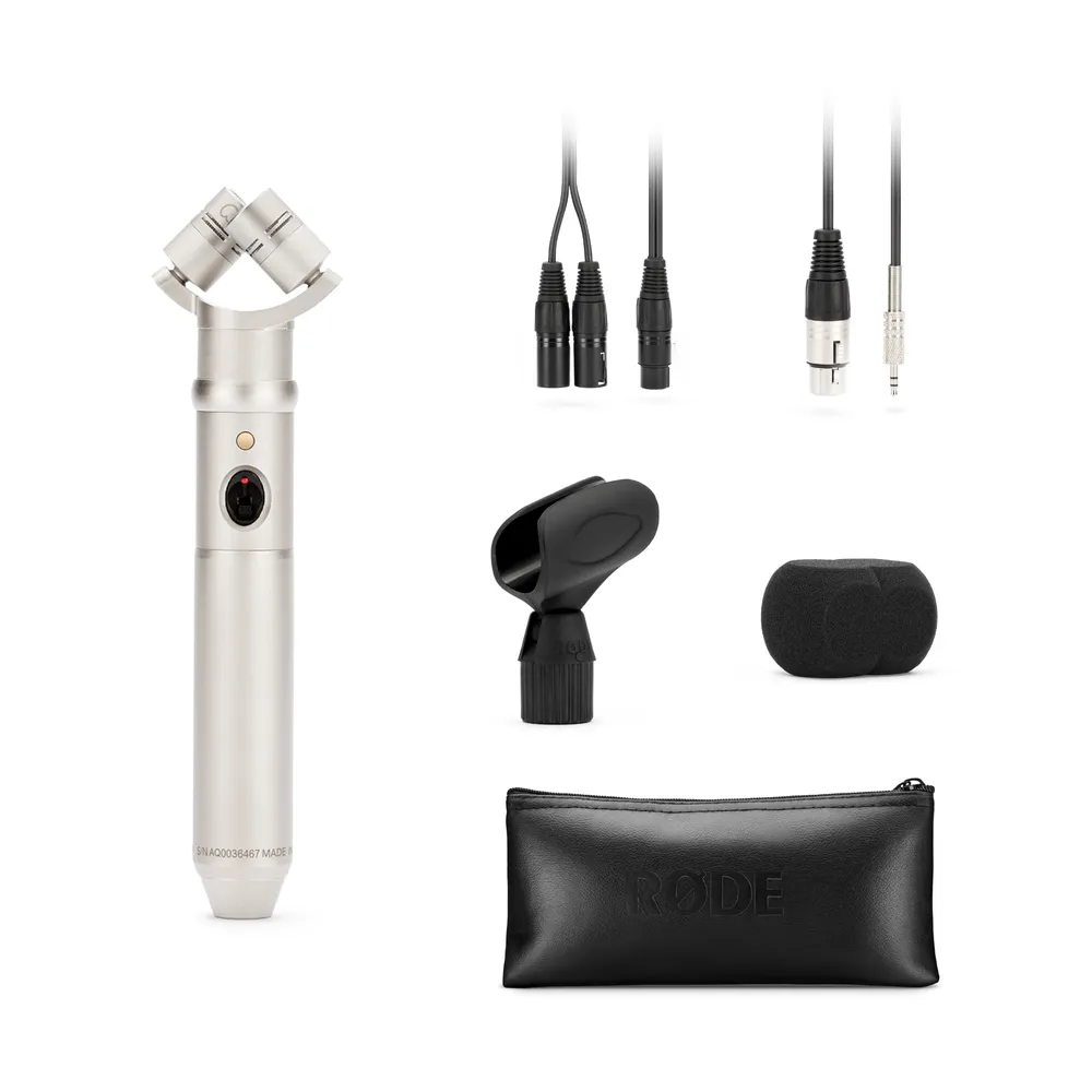 The NT4 is a high-quality stereo condenser microphone designed for both studio and location recording. It features a matched pair of 1/2-inch cardioid condenser capsules positioned in a perfect 90-degree XY array, making it ideal for capturing faithful stereo sound in applications like drum overheads, choirs, environmental recording, and sound design. For added versatility, the NT4 can be powered by either a 9V battery or P48 phantom power. It also comes with stereo XLR and 3.5mm mini-jack cables for direct connection to mixers, portable recorders, or cameras.