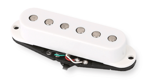 Dual, stacked bobbins. Sounds like a single coil but without the hum. DC resistance: 10K ohms. Output: 85mv.