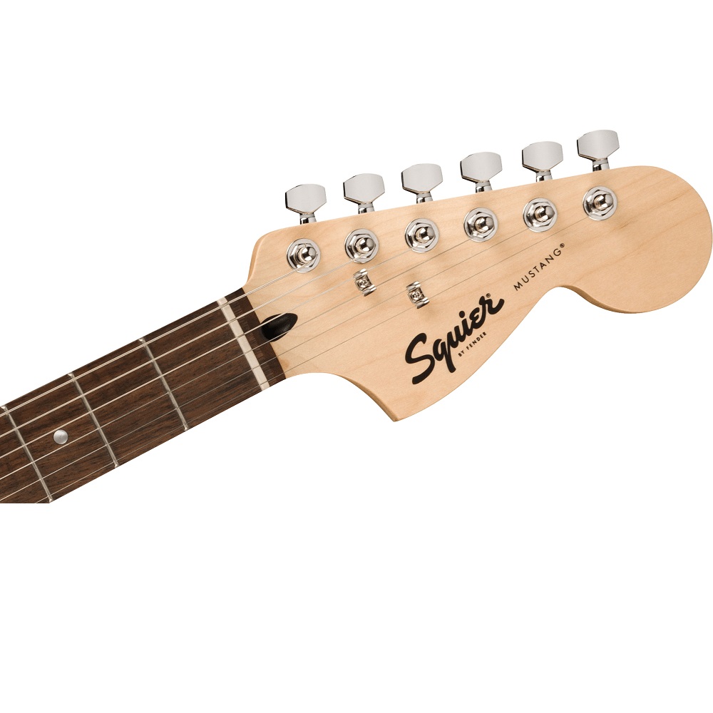 The Squier Sonic Mustang is ready to launch any musical adventure into warp speed, offering iconic Fender® style and inspiring tone for players at any stage. This Mustang sports a slim and inviting “C”-shaped neck profile and a thin, lightweight body for optimal playing comfort while a pair of Squier® single-coil pickups chime with crystal clarity for a wide variety of versatile tones. Further details of this model include a short 24″ scale length, 6-saddle hardtail bridge for reliable intonation, sealed-gear tuning machines for smooth, accurate tuning and durable chrome-plated hardware that is sure to catch the spotlight.
