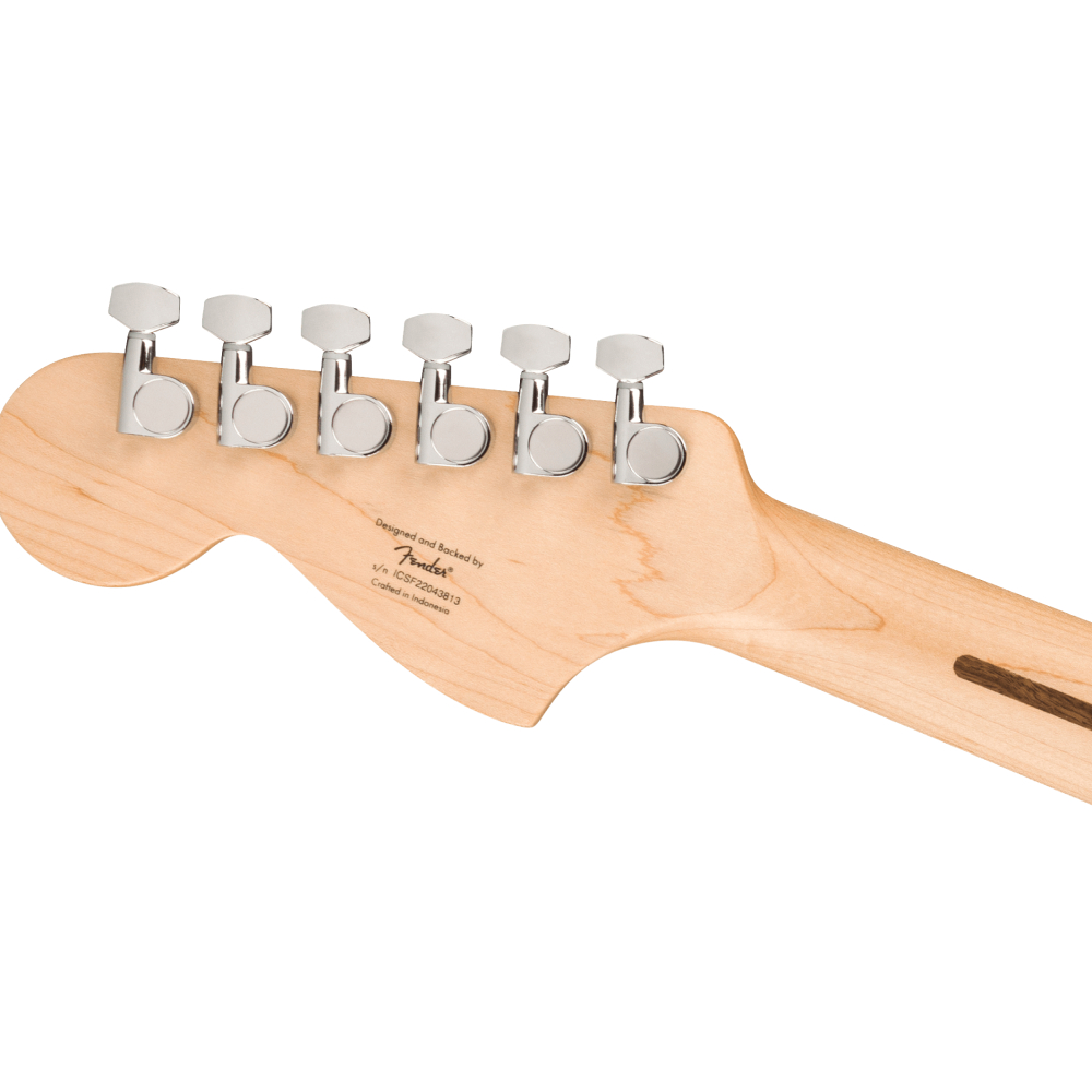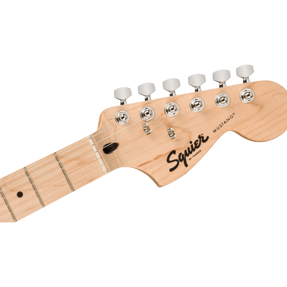 The Squier Sonic⢠MustangĀ® is ready to launch any musical adventure into warp speed, offering iconic FenderĀ® style and inspiring tone for players at any stage. This MustangĀ® sports a slim and inviting āCā-shaped neck profile and a thin, lightweight body for optimal playing comfort while a pair of SquierĀ® single-coil pickups chime with crystal clarity for a wide variety of versatile tones. Further details of this model include a short 24″ scale length, 6-saddle hardtail bridge for reliable intonation, sealed-gear tuning machines for smooth, accurate tuning and durable chrome-plated hardware that is sure to catch the spotlight.