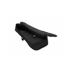 Rectangular. Covered in black nylon waterproof yarn. Grey plush lined with instrument blanket. 2 bow holders, shoulder rest compartment and large accessory compartment with lid. Full length zipper. External accessory pocket. Shoulder strap.