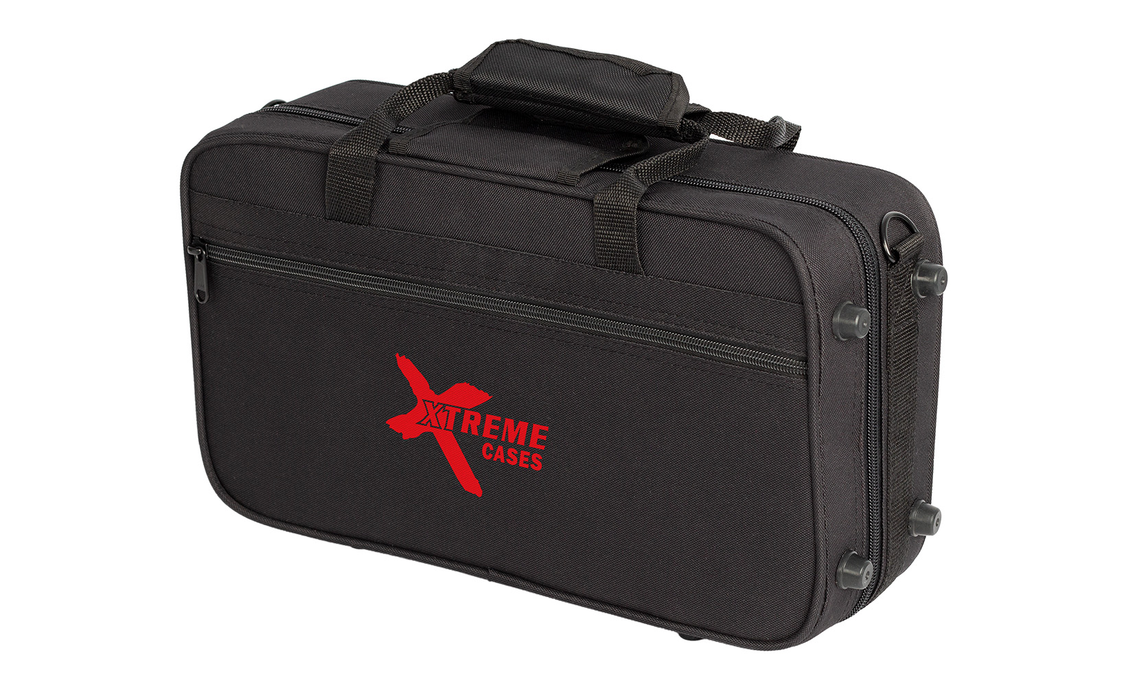 Moulded polystyrene. Covered in heavy duty nylon waterproof yarn. Black plush lined and fitted interior. Carry handle and 1 adjustable, removable shoulder strap. Accessory pocket. Black with embroidered Xtreme logo.