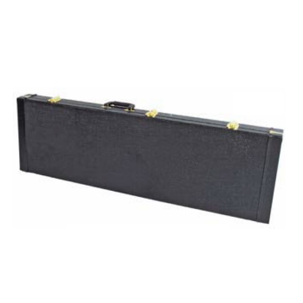 PrecisionĀ® & Jazz BassĀ® rectangular. Plywood covered in black vinyl. Stitched ends. Plush lined. 3 deluxe drawbolt gold latches with