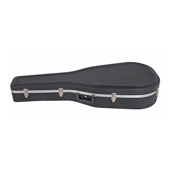 Deluxe Dreadnought Western. ABS moulded. Moulded polystyrene interior with 7mm black super plush lining. Aluminium valance. Covered accessory compartment. 4 deluxe drawbolt latches with lock. Black.