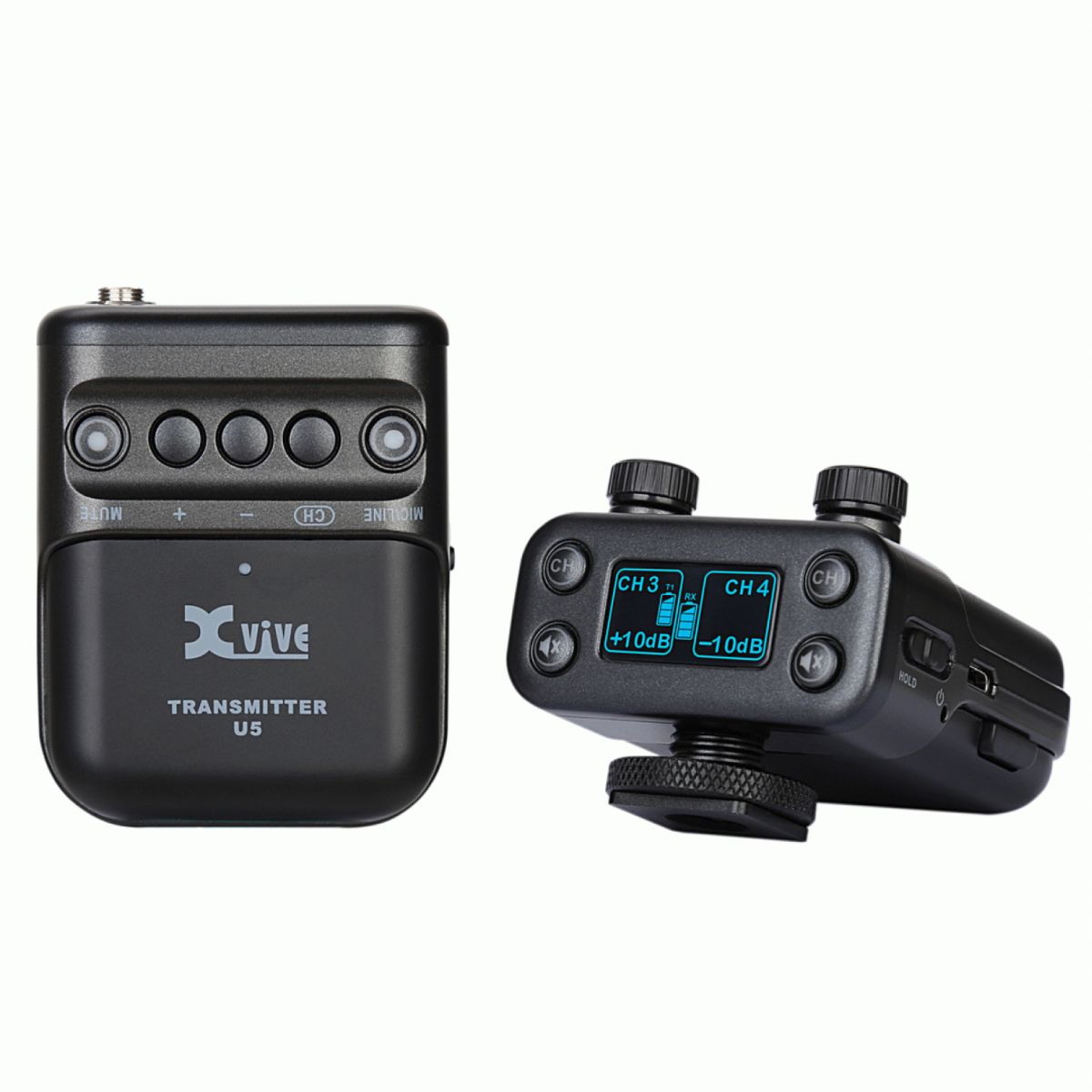 Xvive U5 is a dual channel wireless lavalier microphone system come with LV1 professional lavalier microphones allowing you to send wireless signals from lavalier microphones or other audio sources to a DSLR camera,digital camera,recorder,smart phone and other audio device, and can be used for video shoots, livestreams, interviews, weddings and more.