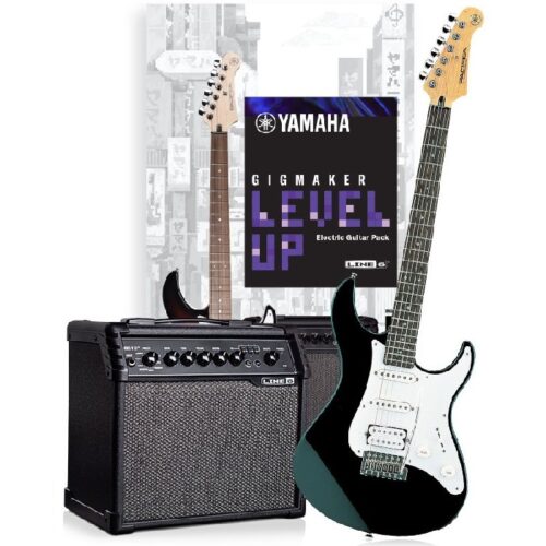 Yamaha Gigmaker Level Up Electric Guitar Pack. Begin your adventure with the right gear and Level Up your playing. Equip yourself with a reliable Pacifica 112J which offers tonal versatility, easy playability, and Yamaha’s meticulous attention to quality. The guitar is paired seamlessly with a Line 6 Spider V 20 MkII Combo Amp, designed to deliver authentic and inspiring tones out of the box. Enhance your journey with additional accessories, including a clip-on tuner, strap, cable, picks and strings. Level Up with GIGMAKER and take your playing from your home to the stage.